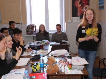 07 march 2019On the 7th of March 2019 the men of the IRLC and the Director of the Institute, Elena Kovtun, congratulated all women staff of the Institute and female students on the International Women Day.