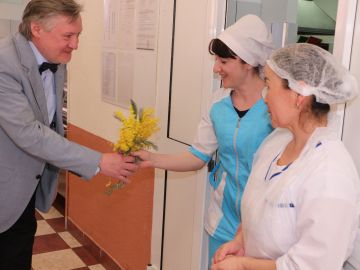 They wished ladies health, happiness and success and presented them with bright spring flowers.